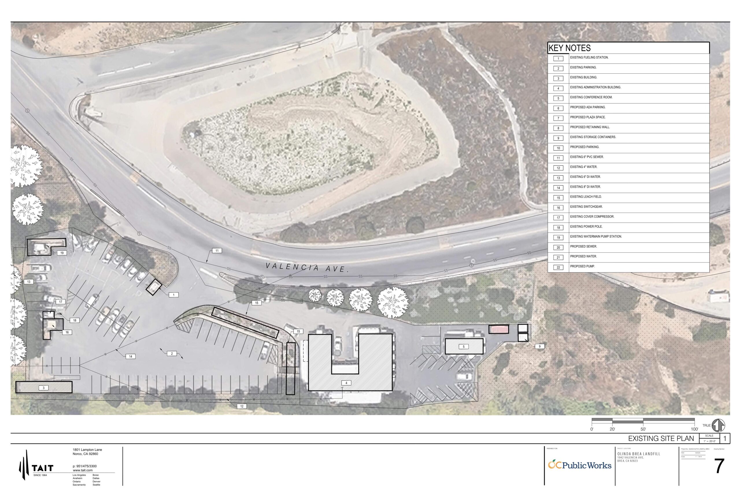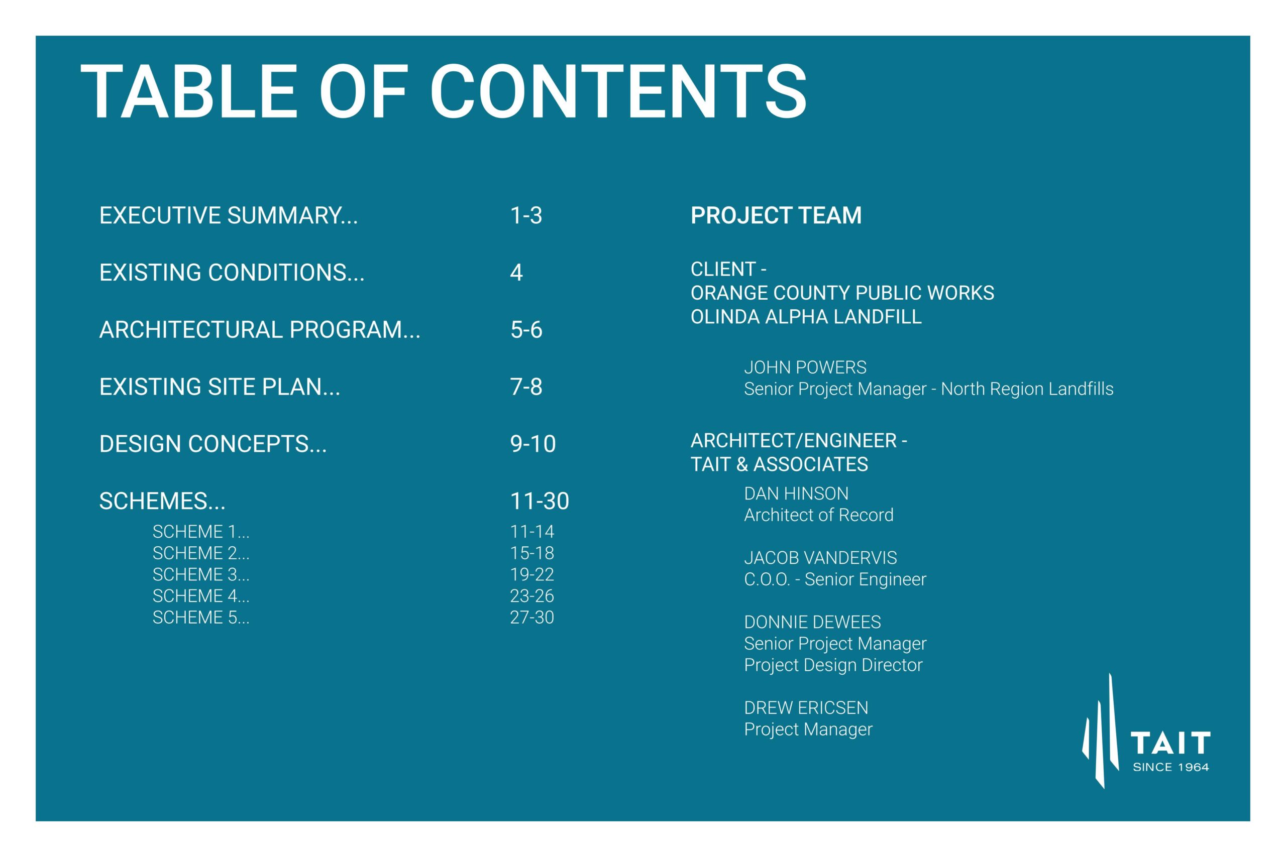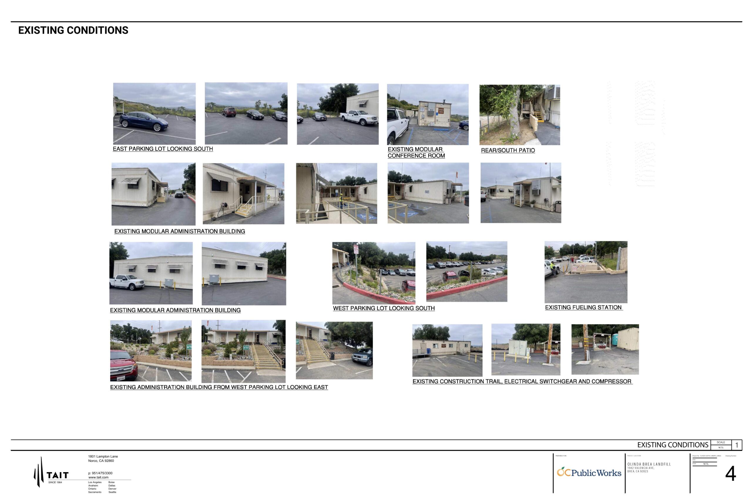 The Olinda Alpha Landfill Administration Building Conceptual Design and Feasibility Study was commissioned to TAIT & Associates by the Orange County Public Works Agency.  The Feasibility Study consists of conducting a complete Site Analysis of the current Site and making a determination of the various options that the Facility may utilize for their Long-Range Planning needs.  Several distinct options were considered from remodeling the existing facility that consists of a group of modular trailers to adding modular trailers to the existing facility and options for constructing a new Administration Building using conventional construction methodologies.