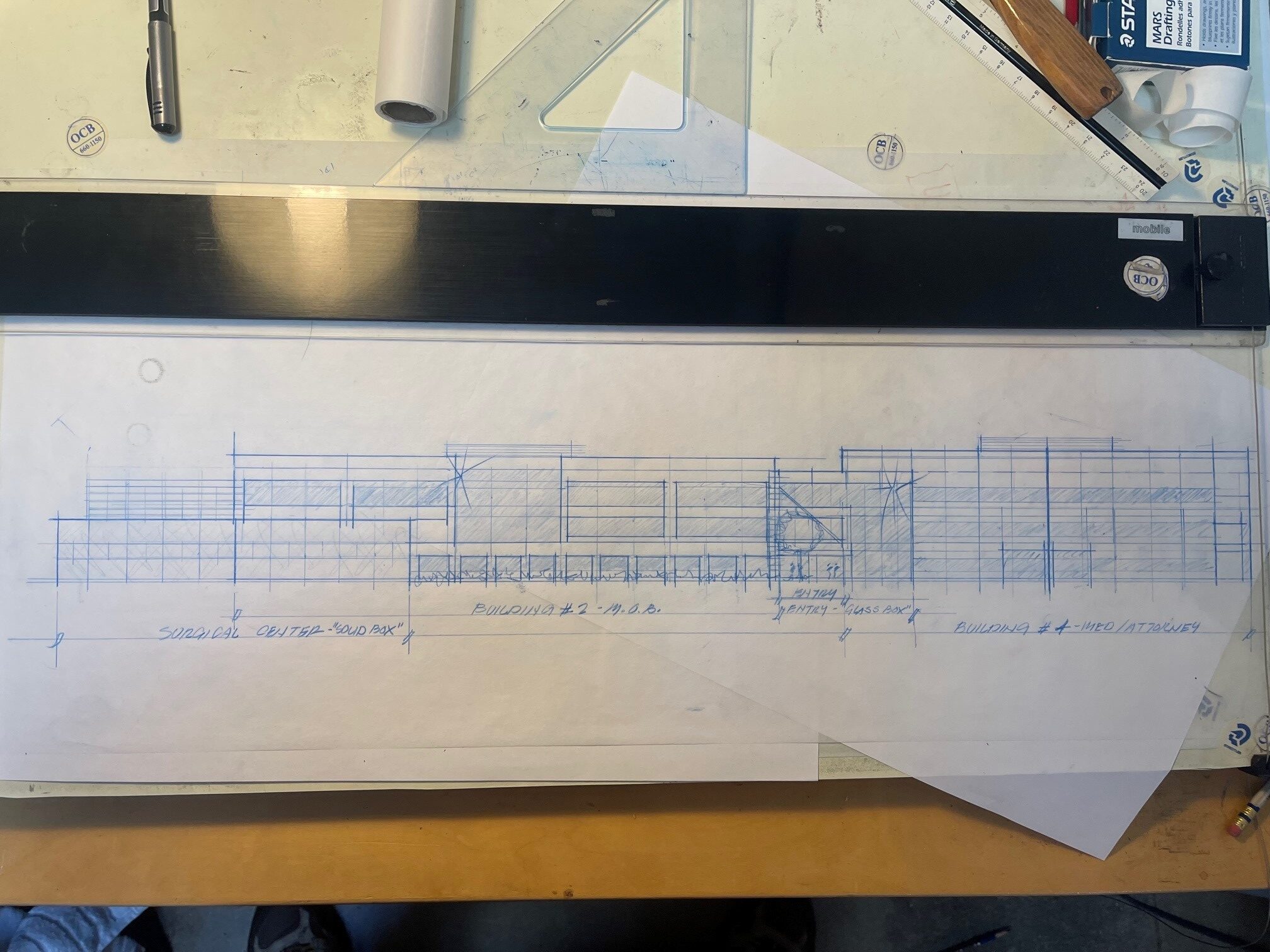 The Concept of the Building Massing and Floor Plan is to have the Three-Story Medical Office Building located on the north side of the site and the Three-Story Professional Office Building located on the south side.  The area in between will be the central lobby for both buildings and the two buildings are then turned upon that area as a central axis.